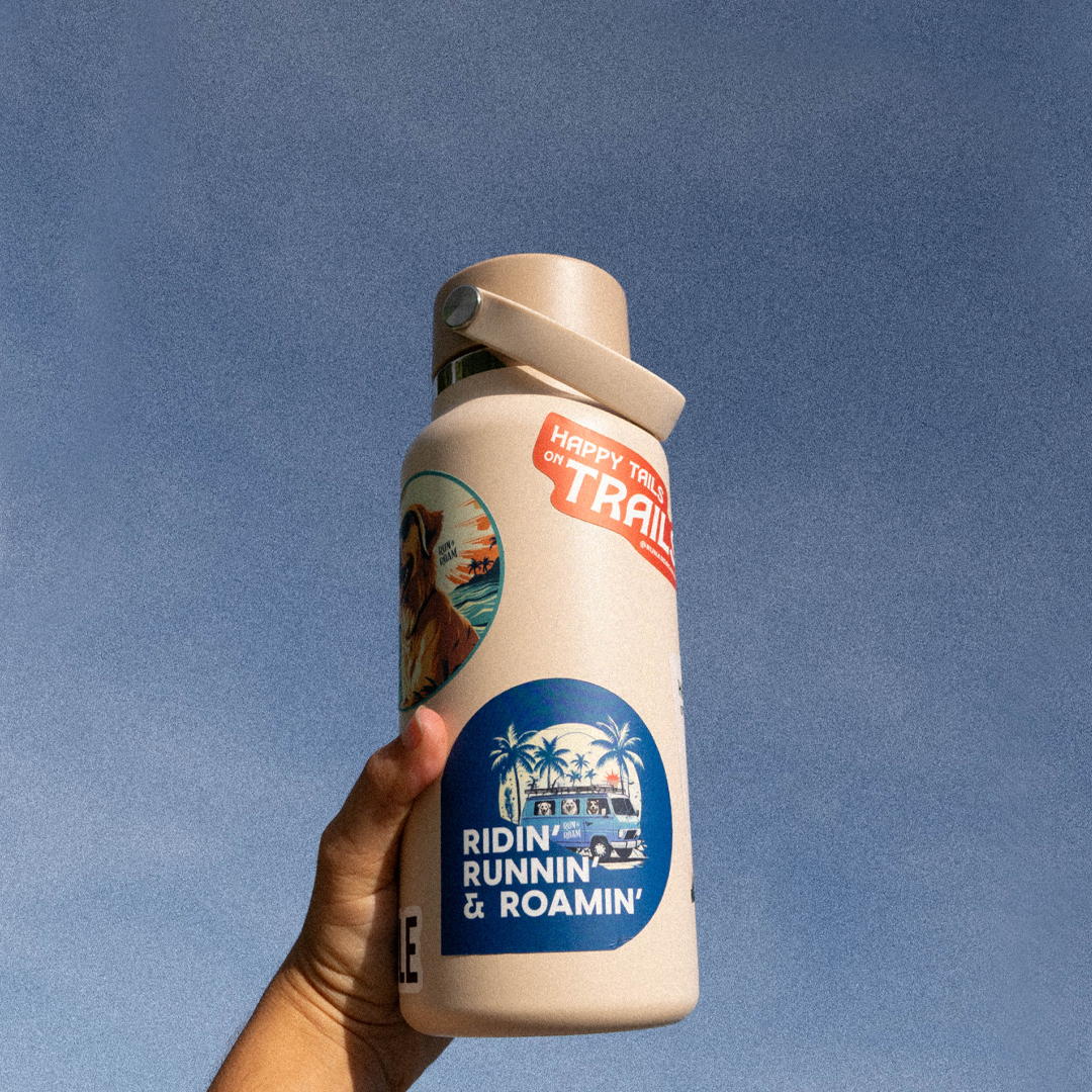 Our Run & Roam sticker pack collection comes with six vibrant stickers. Embrace the spirit of canine exploration and boundless wanderlust!